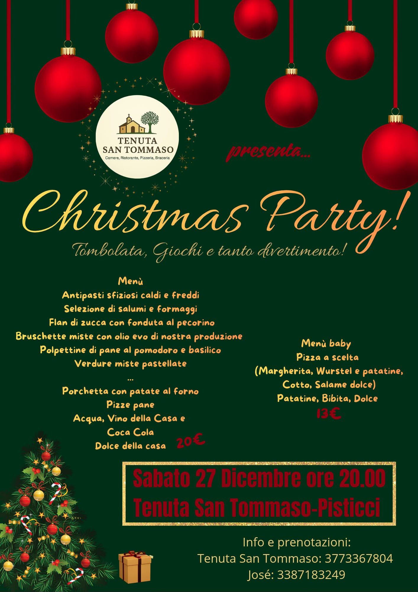 La Tenuta San Tommaso è anche una cornice perfetta per cene aziendali, meeting informali o incontri professionali all’insegna della buona cucina e del relax. La nostra sala ristorante offre un’atmosfera riservata e curata, ideale per momenti di condivisione tra colleghi o per celebrare traguardi aziendali in modo semplice ma elegante. È possibile personalizzare il menù in base alle esigenze del gruppo, scegliendo tra piatti tipici lucani, pizze artigianali o grigliate di carne alla brace.